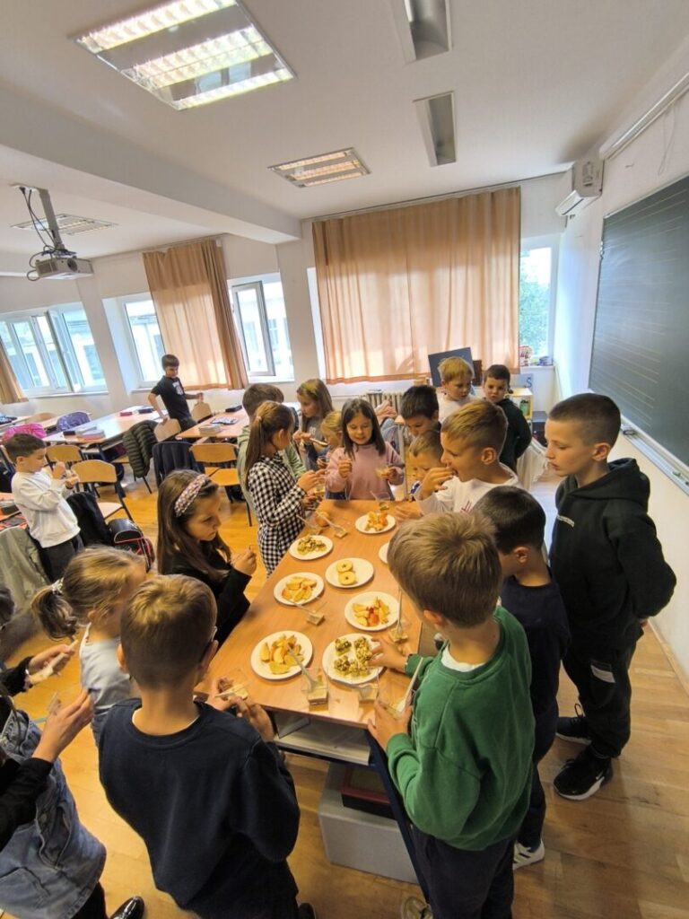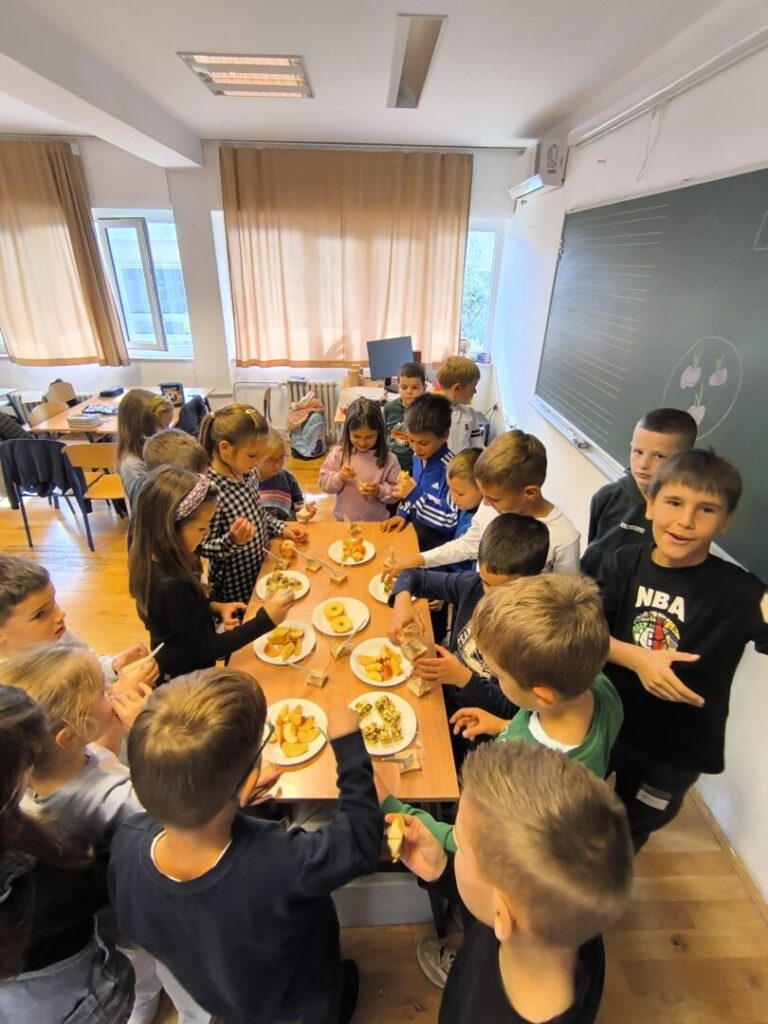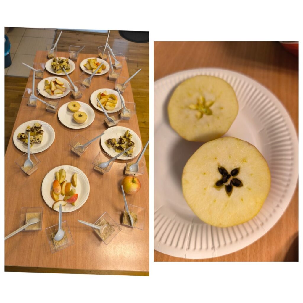Dan je bio pun igre, mirisa, okusa i smijeha. Započeli su dan pričom „Zvjezdana jabuka“, uz koju su otkrili da se u svakoj jabuci krije prava mala čarolija — zvjezdica. Na satu matematike učili su o skupovima i pritom slagali jabuke, brojili ih i uspoređivali.