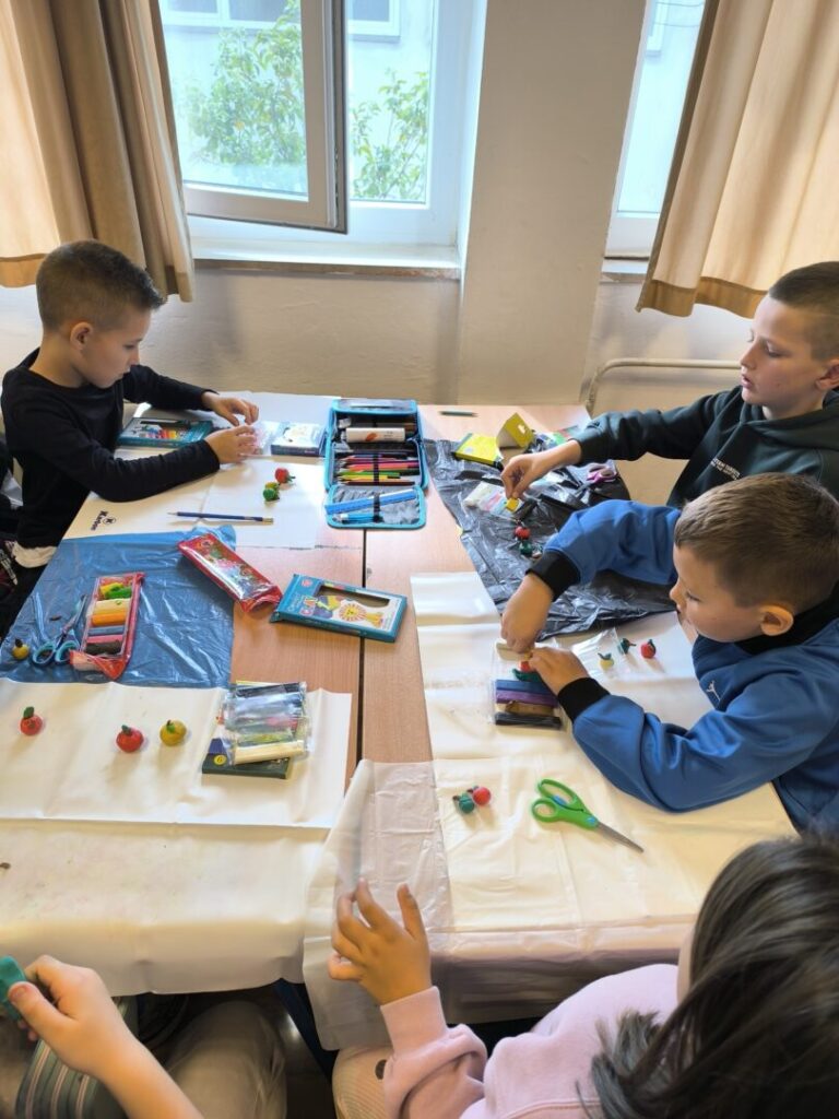 Na likovnom su postali pravi mali kipari: od plastelina su nastajale šarene jabuke svih oblika i veličina. U razredu je vladala prava jesenska atmosfera — puna boja, veselja i smijeha.