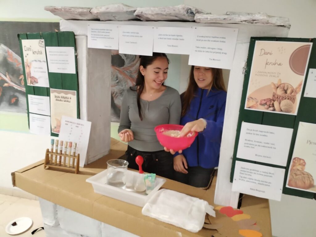 Župnik fra Bojan blagoslovio je kruh i krušne proizvode koji su napravili učenici i roditelji. Slijedila je humanitarna prodaja. Ukupno smo prikupili 810 eura. Sav prikupljeni iznos namijenjen je obiteljima škole i obrazovanju djece iz Konga – projekt Škole za Afriku (Unicef). Eko grupa pod vodstvom profesorice biologije Biljane Agić predstavila je Biologiju kruha: „Od fotosinteze do fermentacije“. Njemački kutak u školskom holu pripremila je profesorica njemačkog jezika Nada Nekić. Prikazani su recepti za pripremu kruha s naglaskom na „Krušne proizvode njemačkog govornog područja“. Izložbu likovnih radova naših učenika pripremile su učiteljice razredne nastave. Za jesenski izgled škole zaslužne su učiteljica likovne kulture Tea Barišić, Ane Kačunić i učiteljice Ivanka Biskup, Blanka Šimićev i Maja Škara. Vjeroučiteljice Marta Torić i Anita Žunić Rogić sudjelovale su u organizaciju humanitarnih aktivnosti.