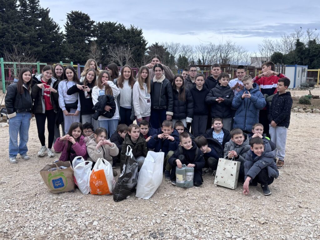 Posjet azilu organizirale su učiteljice Marinela Ivković i Jasmina Sandalić, voditeljica naše Učeničke zadruge „Điran“, u okviru projekta „Daj šapi glas!“. Posebno smo ponosni što su naši zadrugari azilu namijenili i dio prihoda ostvarenog prodajom svojih proizvoda na Božićnom sajmu, pokazujući tako veliko srce i društvenu odgovornost.