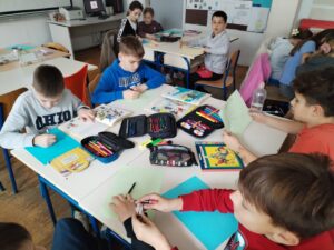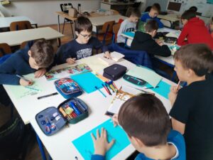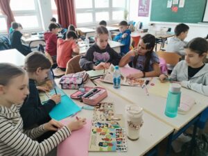 Svaki razred dobio je zadatak prikazati jedan od ovih pozdrava kroz crtež. Mali umjetnici su maštovito pristupili zadatku – osmijeh, sunce, zvjezdano nebo i mnogi drugi simboli našli su se na njihovim radovima. Na kraju smo odabrali najuspješniji crtež, koji je otisnut na majicu kao poseban podsjetnik na ovaj dan i trud naših učenika. Radionica je protekla u veselom ozračju – djeca su učila, smijala se i otkrivala kako jezici povezuju ljude. Najvažnije je što su shvatili da učenje stranih jezika može biti zabavno i kreativno, a upravo to je i glavni cilj obilježavanja Europskog dana jezika.