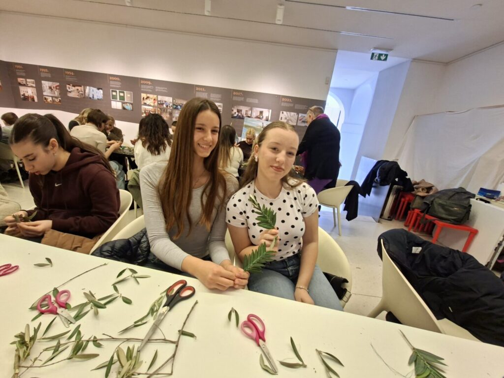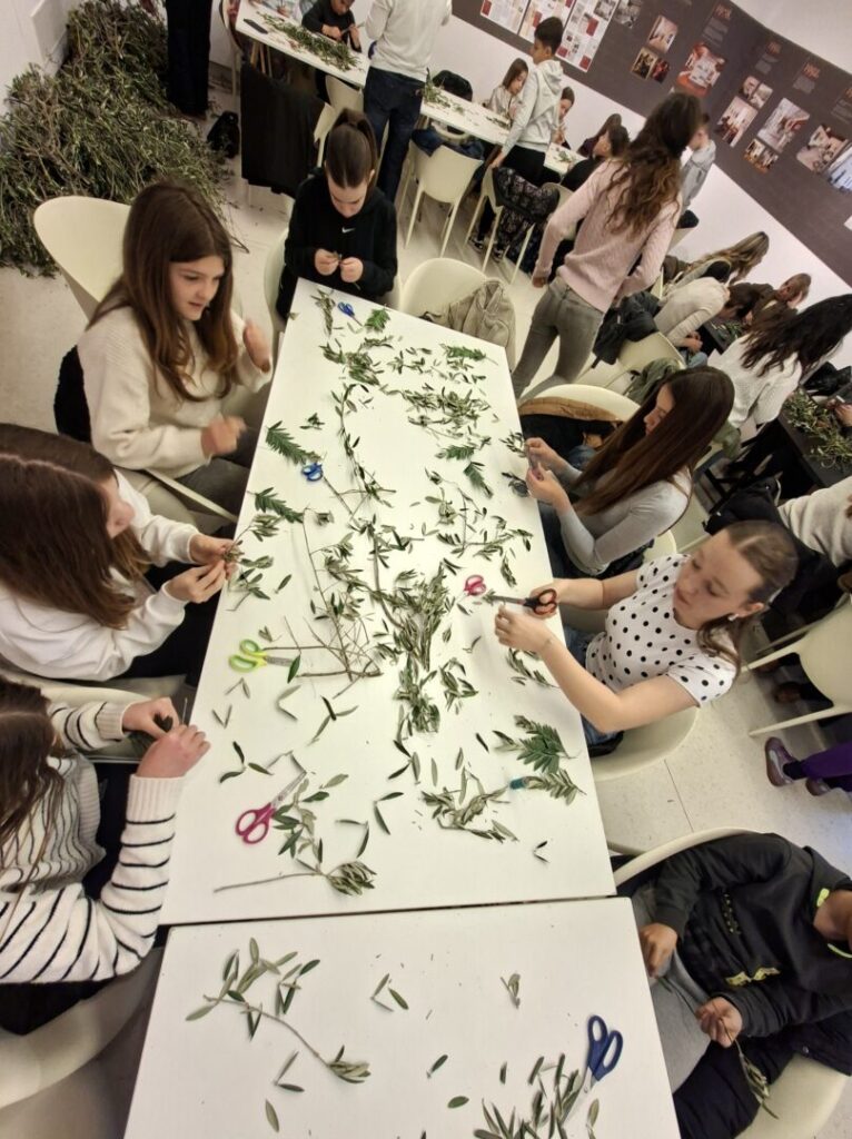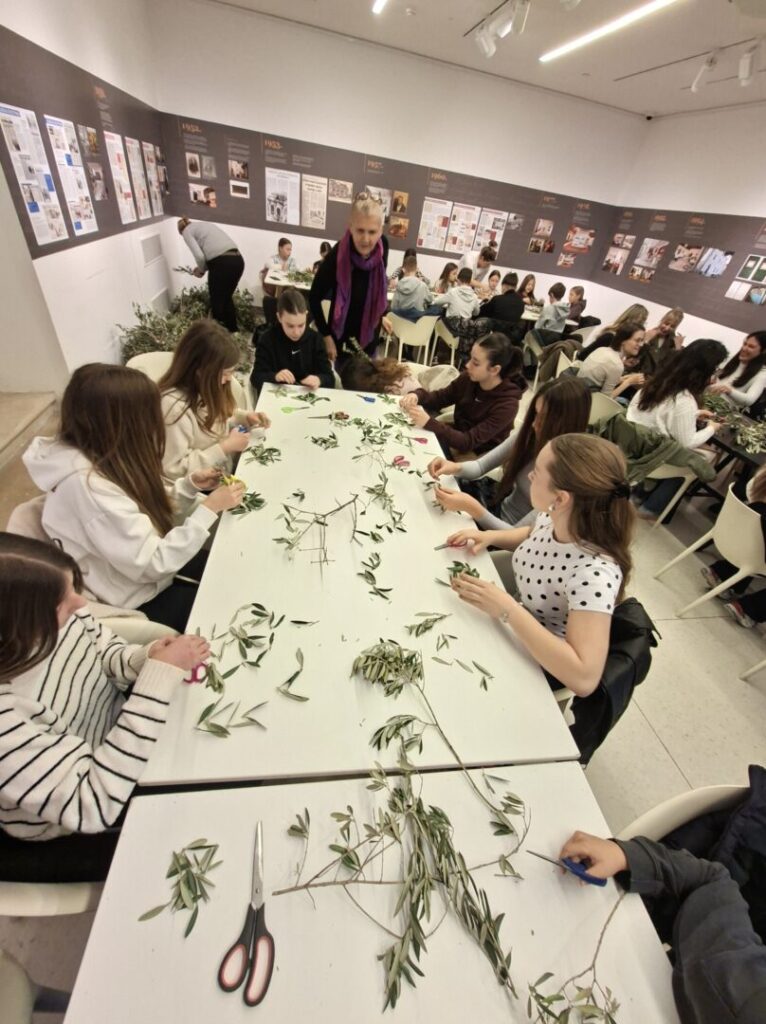 Učenice 7.D i 7.E razreda naše škole sudjelovale su u tradicionalnoj radionici pletenja maslinovih grančica za blagdan Cvjetnice u Kneževoj palači.
