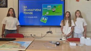 Učenice 6.d razreda Greta Klarin, Mila Biloglav Sinovčić i Tiara Mašina i njihove mentorice Anita Mustać, prof. biologije i Zrinka Klarin, prof. geografije sudjelovale su na 14. Znanstvenom pikniku 3. i 4. listopada 2025. Znanstveni piknik održan je u Gornjoj Stubici, a naše učenice su svoj projekt predstavile online. Učenice su na državnoj razini predstavile školski projekt “Nevidljivi uljez u moru” u kojem su istražili prisutnost mikroplastike u zadarskoj luci Gaženica. Tijekom istraživanja prikupljali su uzorke mora, filtrirali ih i mikroskopirali. Rezultati mikroskopske analize mora pokazali su prisutnost mikroplastike u moru zadarske luke te time dokazali sve veći rast ovog ekološkog problema na lokalnoj i globalnoj razini.