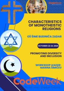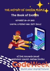 EU CodeWeek je društvena inicijativa koja na kreativan način promiče programiranje i digitalnu pismenost diljem Europe. Cilj joj je potaknuti učenike da na zabavan način steknu iskustvo i stvaraju s tehnologijom. Time se potiče kreativnost, inovativnost i dugoročno razmišljanje. Ove godine provodi se od 11. do 26. listopada. Učenici 5.a, 5.b, 6.a i 6.b razreda uključili su se u aktivnosti EU CodeWeek-a s vjeroučiteljicom Marinom Šimičev. Učenici petih razreda su kroz osnovne zadatke programiranja povezali sadržaje o monoteističkim religijama. Učeći o drugim običajima i moralnim načelima razvijali su jednakost, poštovanje i uključivost što čine načela ove inicijative. Učenici šestih razreda svoja znanja o događajima izabranog naroda prikazali su kroz digitalne vještine u digitalnim alatima (strip, naslovnica, plakat, videozapis). Radom u grupi razvijali su timski rad, komunikaciju i suradnju. Stečena biblijska, digitalna znanja i vještine prikazali su na kreativan i inovativan način. Bravo!